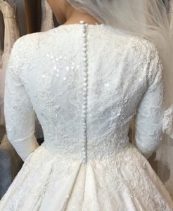 Secondly, our sewing room is within our store, this is great news for you because it means that whilst your dress is with us in alterations it never leaves our store, it remains on our premises, at all times, it will not ever go back to the house of a freelance seamstress who may keep pets, be a smoker or have kids with sticky fingers. That’s our promise to you.